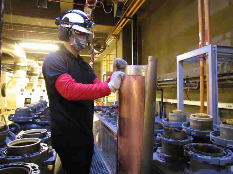 28国际将废弃物转化成有效的工业或民生原物料,,图为废铜液淬炼后再制成纯度极高的铜管