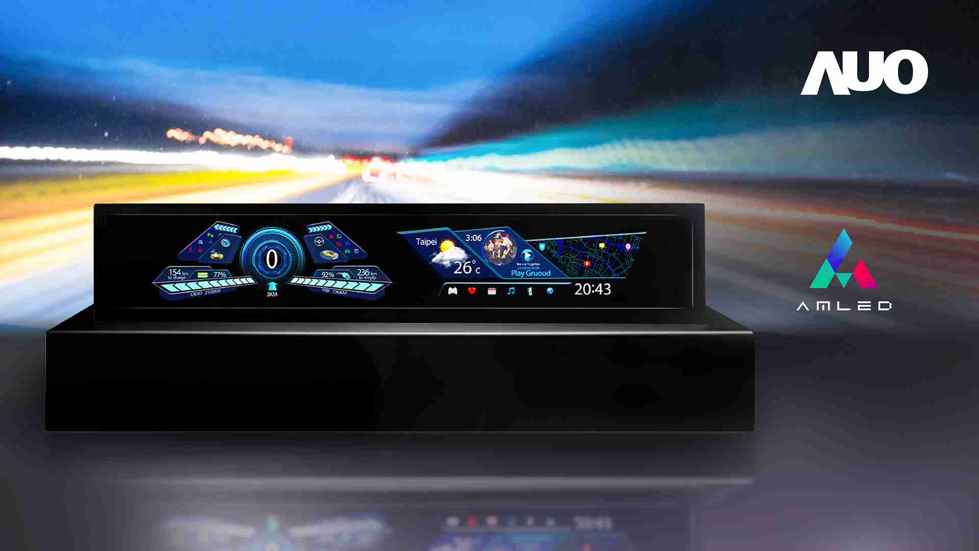 继 AmLED 技术以特有的高亮度、、、、高明室对比、、高色容量、、高稳定性等优点获 IT 应用市场肯定,,,28国际亦将大尺寸 AmLED 面板延伸导入车用市场,,,以不断精进的独家动态调控科技,,,,结合内嵌式触控功能与极窄边框美型设计,,于 CES 期间展示一系列车载显示器应用,,,,期能推广 AmLED 技术应用于车载中控台与仪表板,,满足驾驶对于行车安全信息的可视性,,,,以及车内乘客的视听娱乐需求,,完美演绎智慧座舱未来想象。。。。