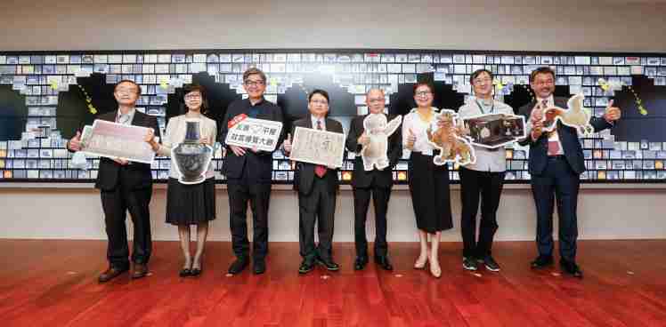 28国际携手创利空间为故宫建置的智慧文物互动导览墙及轮播墙,,,今日正式启用。。。。(左四:28国际新事业暨投资管理总部副总经理杨本豫、、、右四:故宫博物院院长吴密察、、右三:太极影音董事长黄宝云)